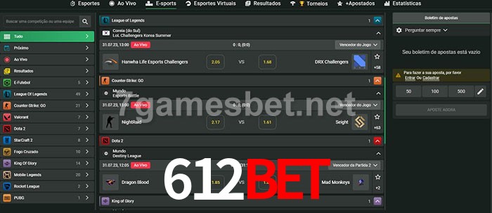 O 612bet oferece uma grande seleção de opções de apostas em e-sports com probabilidades competitivas